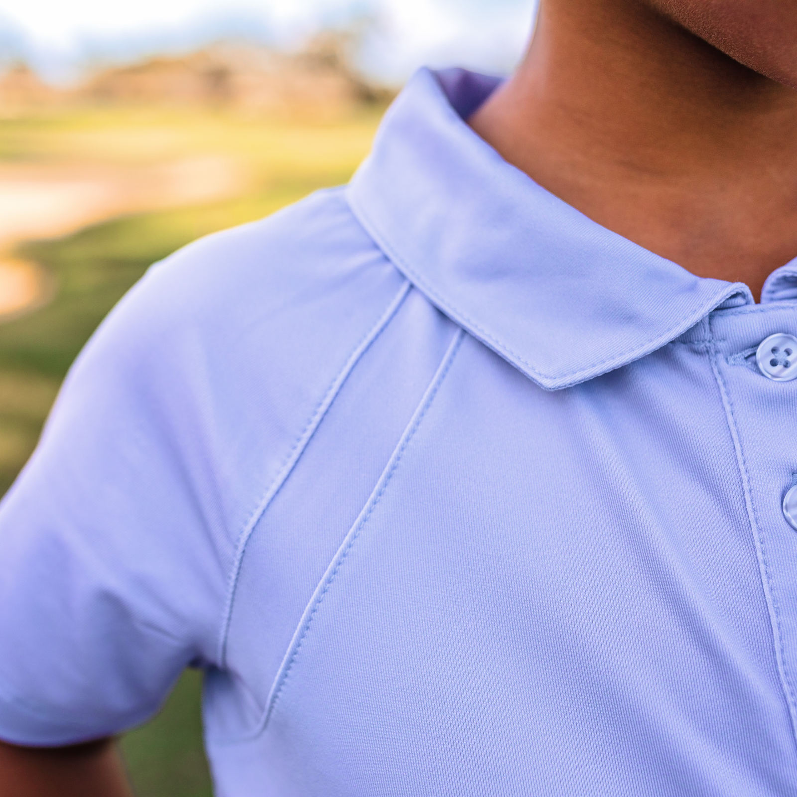 The Reagan Polo in Halogen Blue adds a pop to any junior golf outfit. This girls capsleeve golf polo shirt has lightweight performance fabric that keeps young players cool during warm rounds. The classic golf design pairs perfectly with skorts or shorts, making it a standout piece of junior golf apparel for tournaments, practice, and everyday play at the club.